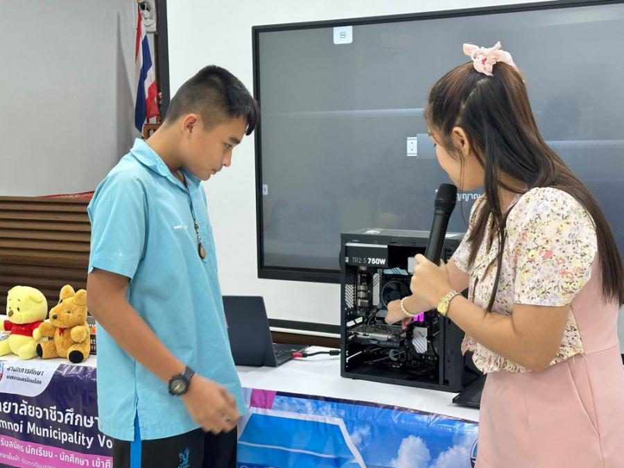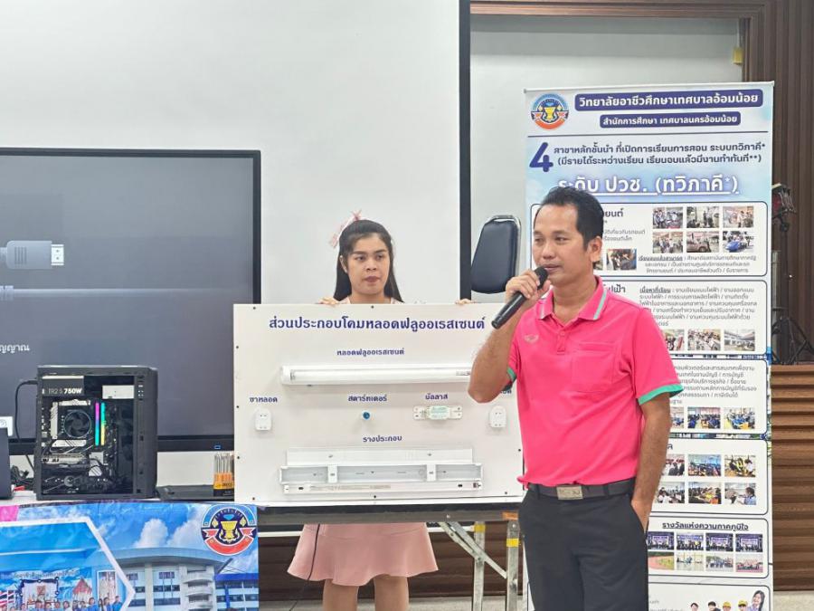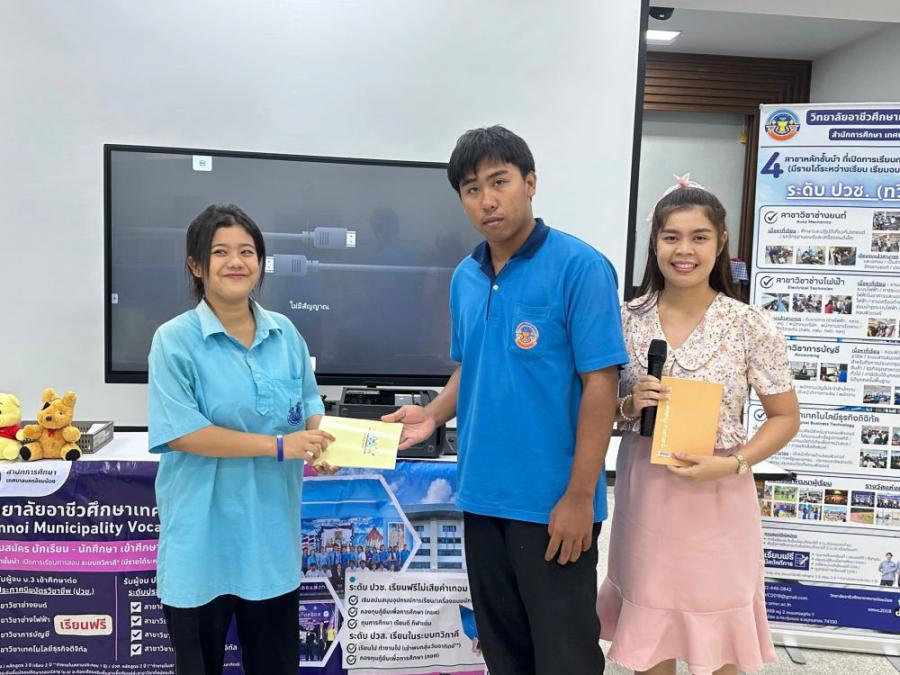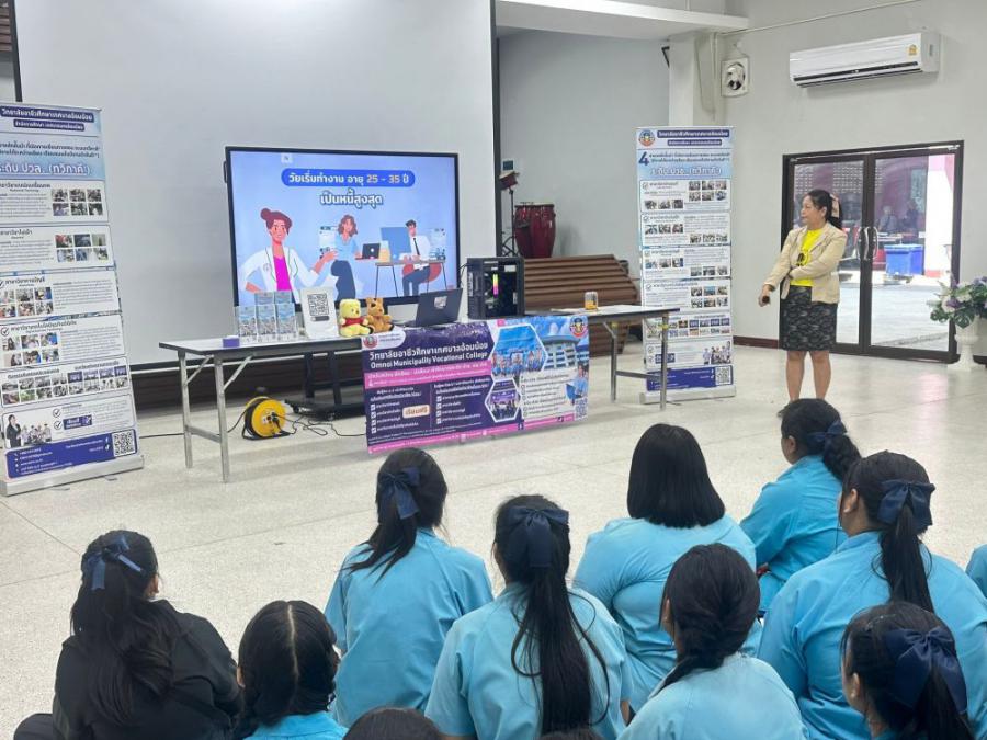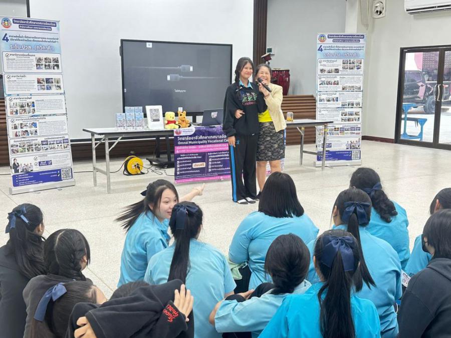วิทยาลัยอาชีวศึกษาเทศบาลอ้อมน้อย โดย นายณรงค์ จันทะธรรม ผู้อำนวยการสถานศึกษา มอบหมายให้นางสาวพิมลมาศ สุทธิสอาด รองผู้อำนวยการสถานศึกษา พร้อมคณะครูแนะแนว เข้าแนะแนวศึกษาต่อระดับมัธยมศึกษาปีที่ 3 ณ โรงเ