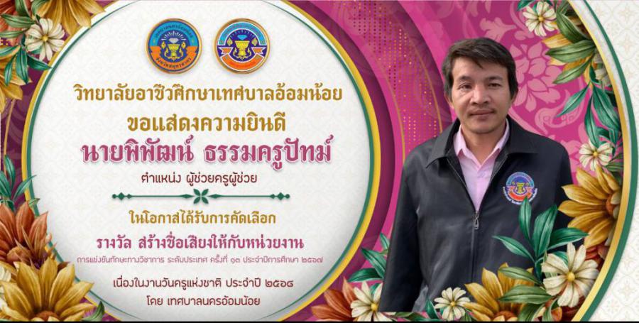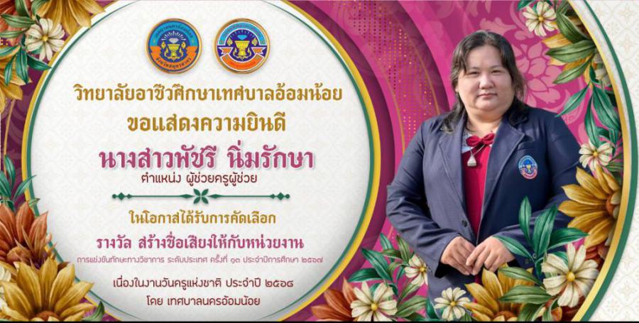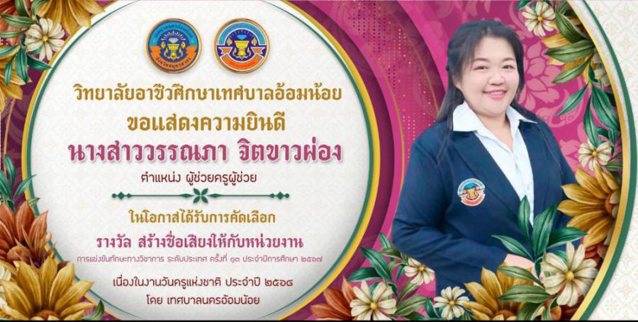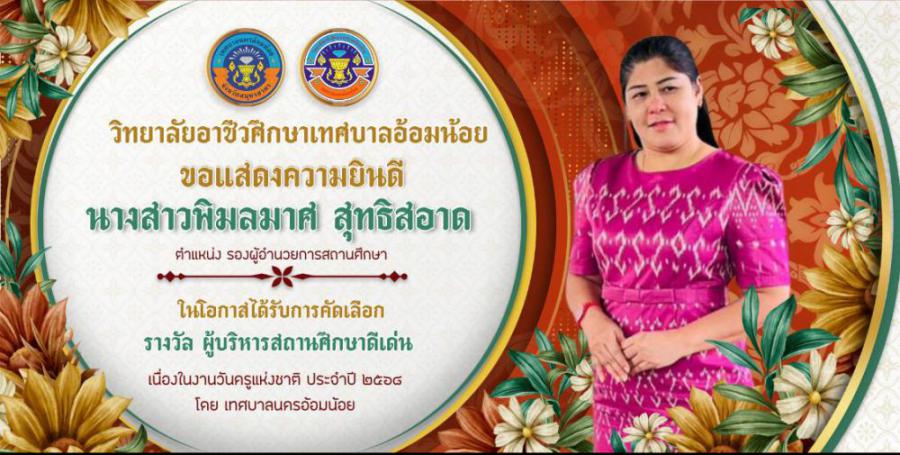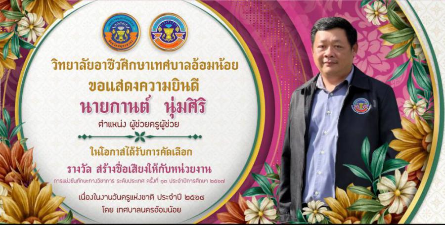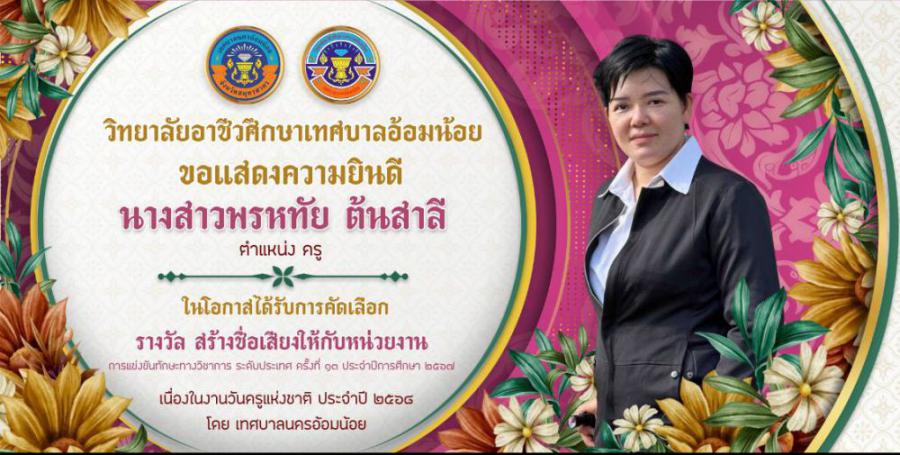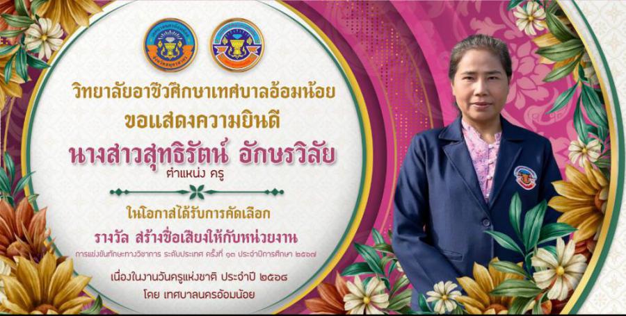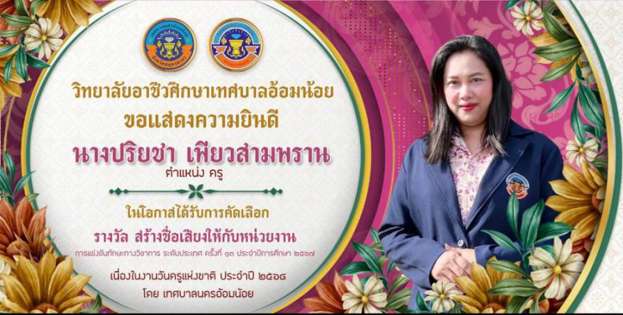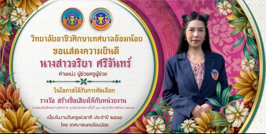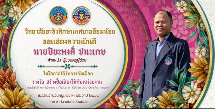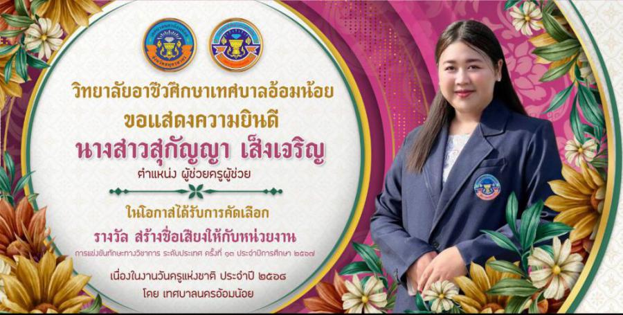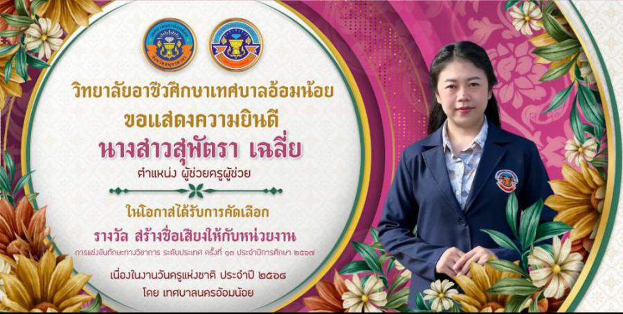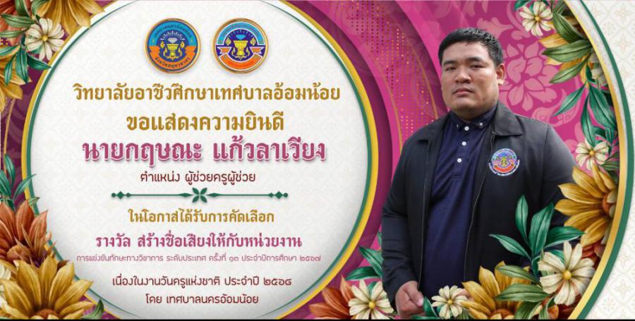 ขอแสดงความยินดี กับผู้บริหาร ครู วิทยาลัยอาชีวศึกษาเทศบาลอ้อมน้อย ที่ได้รับการยกย่องเชิดชูเกียรติ เนื่องในวันครู ประจำปี พ.ศ.๒๕๖๘ จากเทศบาลนครอ้อมน้อย ????????ึ S:0
