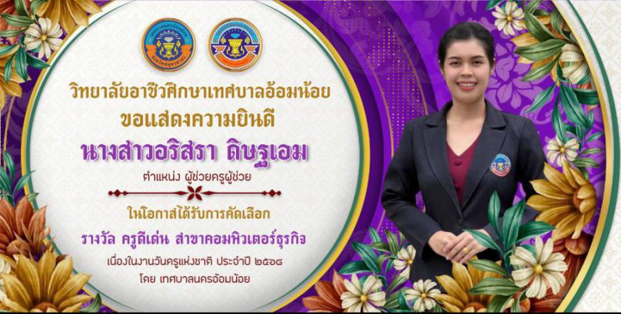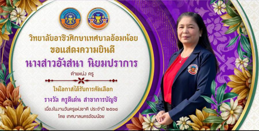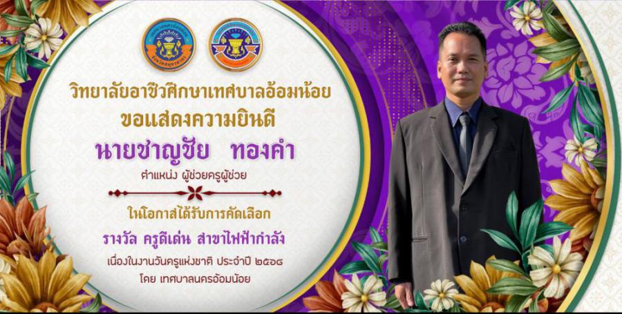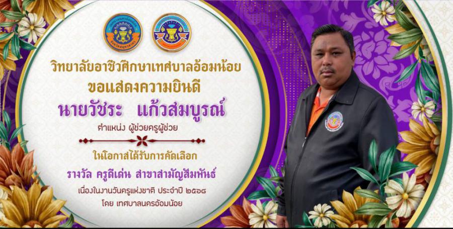 ขอแสดงความยินดี กับผู้บริหาร ครู วิทยาลัยอาชีวศึกษาเทศบาลอ้อมน้อย ที่ได้รับการยกย่องเชิดชูเกียรติ เนื่องในวันครู ประจำปี พ.ศ.๒๕๖๘ จากเทศบาลนครอ้อมน้อย ????????ึ