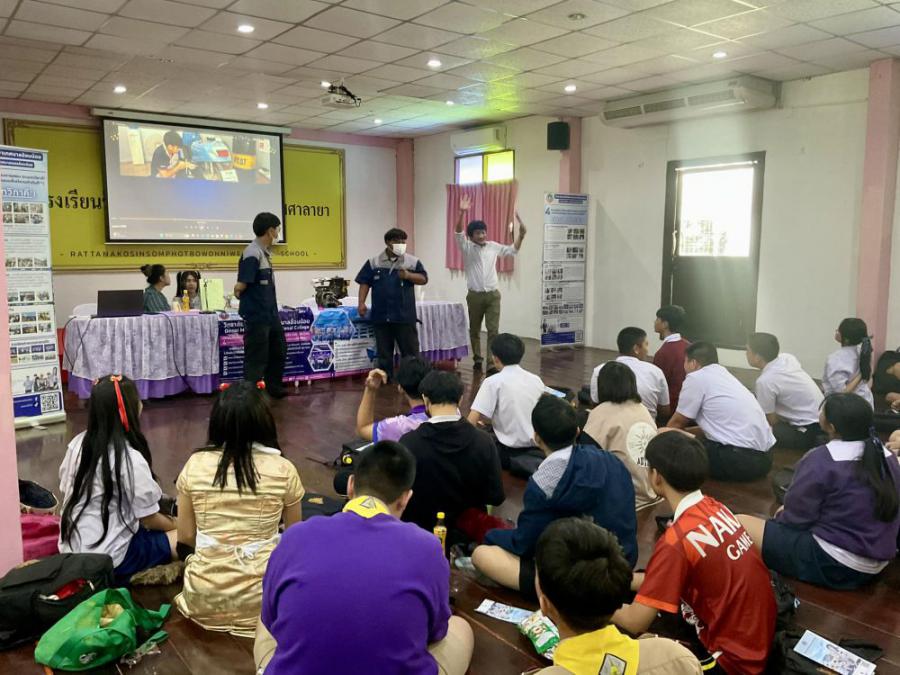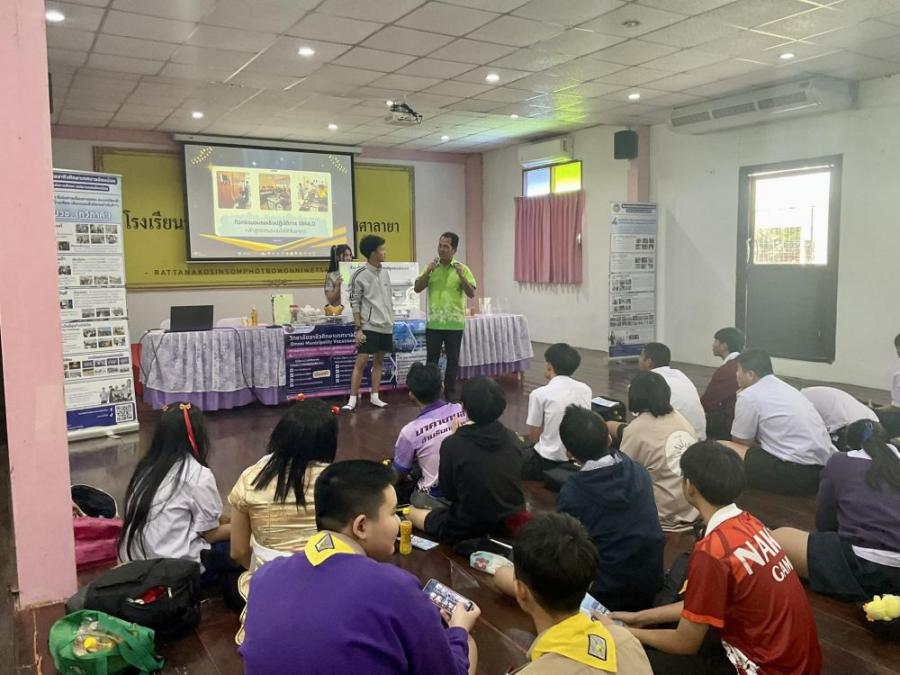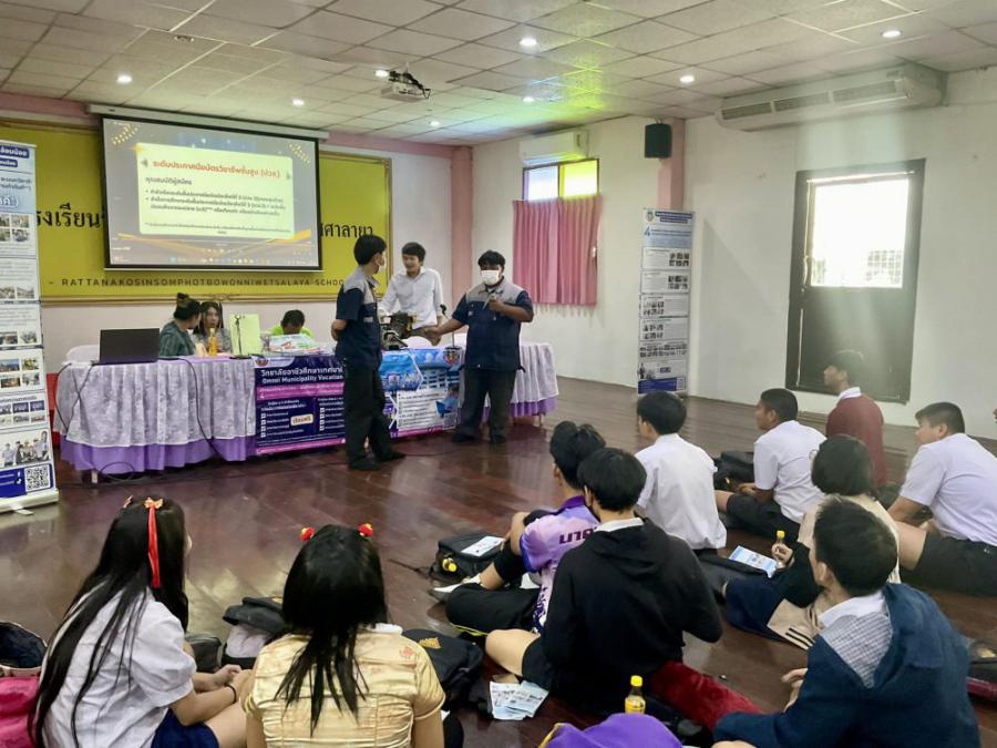 วิทยาลัยอาชีวศึกษาเทศบาลอ้อมน้อย ?? โดย นายณรงค์ จันทะธรรม ผู้อำนวยการสถานศึกษา มอบหมายให้นางสาวพิมลมาศ สุทธิสอาด รองผู้อำนวยการสถานศึกษา นางสาวจริยา ศรีจันทร์ หัวหน้างานแนะแนวอาชีพและการจัดหางาน พร้อมคณะครูแนะแนว เข้าแนะแนวศึกษาต่อระดับมัธยมศึกษาปีที่ 3 ณ. โรงเรียนรัตนโกสินทร์สมโภชบวรนิเวศศาลายา ในพระสังฆราชูปถัมภ์ จ.นครปฐม เมื่อวันที่ 29 มกราคม 2568 ?? นักเรียนคนใดสนใจสามารถสมัครได้ที่วิทยาลัยอาชีวศึกษาเทศบาลอ้อมน้อย S:0