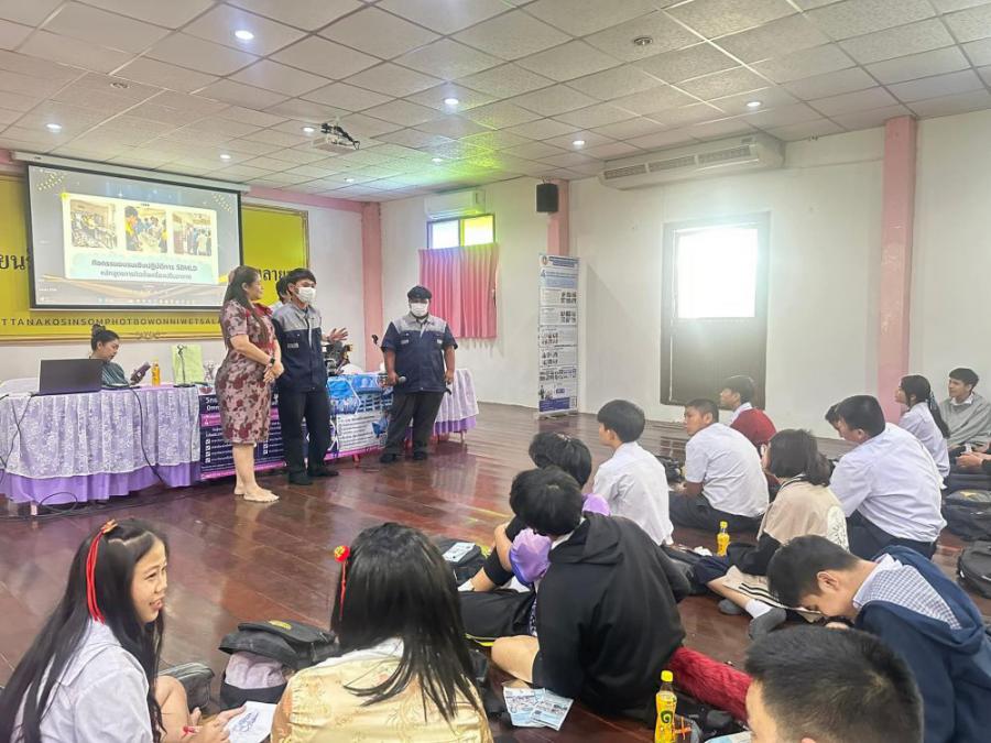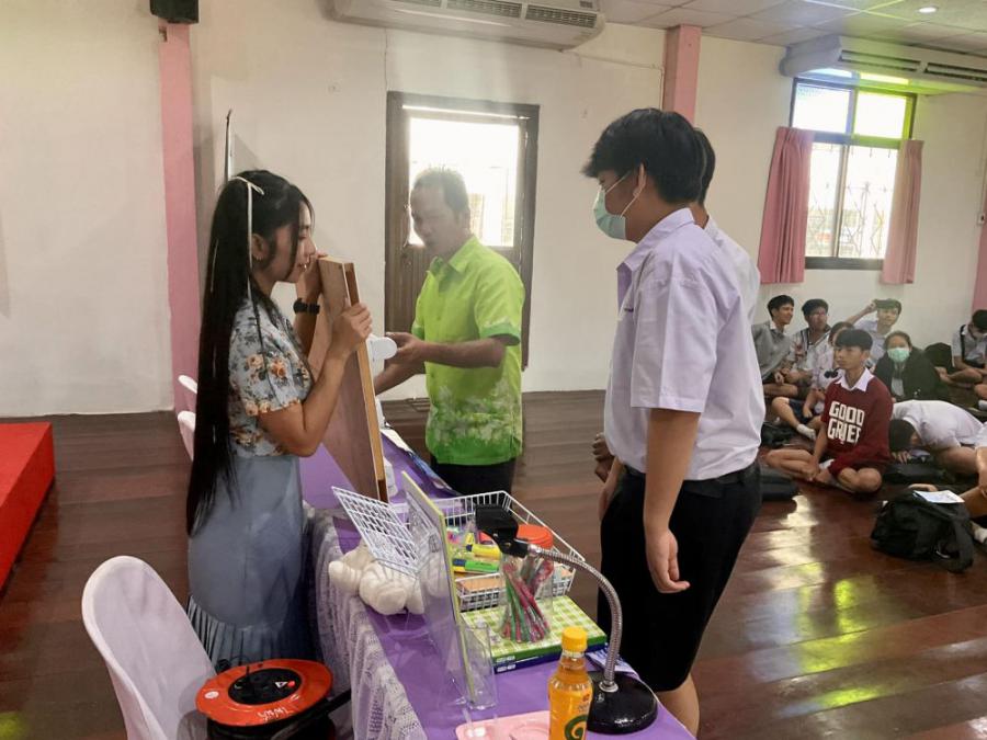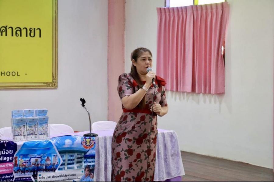วิทยาลัยอาชีวศึกษาเทศบาลอ้อมน้อย ?? โดย นายณรงค์ จันทะธรรม ผู้อำนวยการสถานศึกษา มอบหมายให้นางสาวพิมลมาศ สุทธิสอาด รองผู้อำนวยการสถานศึกษา นางสาวจริยา ศรีจันทร์ หัวหน้างานแนะแนวอาชีพและการจัดหางาน พร
